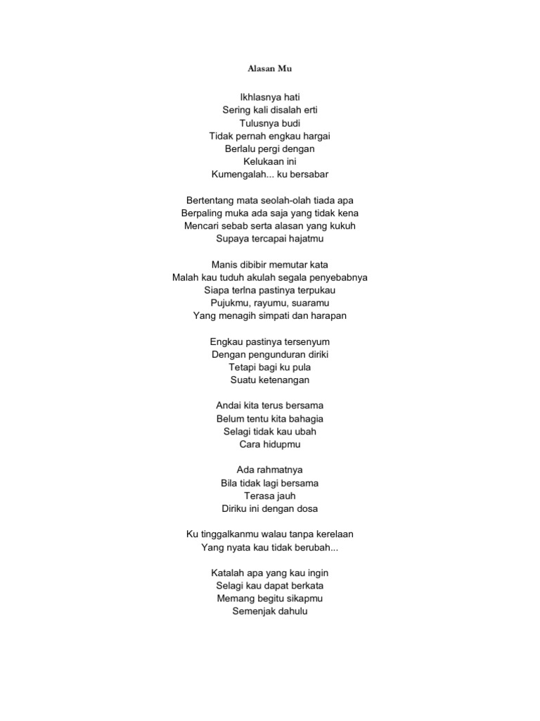 Manis dibibir memutar kata lirik. D a g gm a bm fm ikhlasnya hati sering kali di salah arti bm a tulusnya cinta tidak pernah engkau hargai d fm berlalu pergi dengan kelukaan ini. Lirik mencari alasan dari exist ini dipublikasikan pada tanggal 16 april 2006 14 tahun yang lalubelum ada info detil tentang single ini. Lirik mencari alasan oleh exist. Siapa terlena pastinya terpanah wujudny rayunyaswaranya.