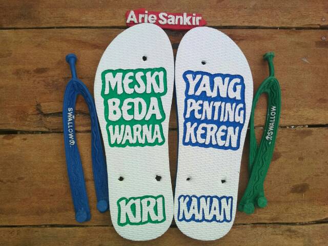 Ukiran sendal swallow bisa dengan gambar apa saja motif ukir kata kata gambar lucu karakter kartun seperti doraemon.