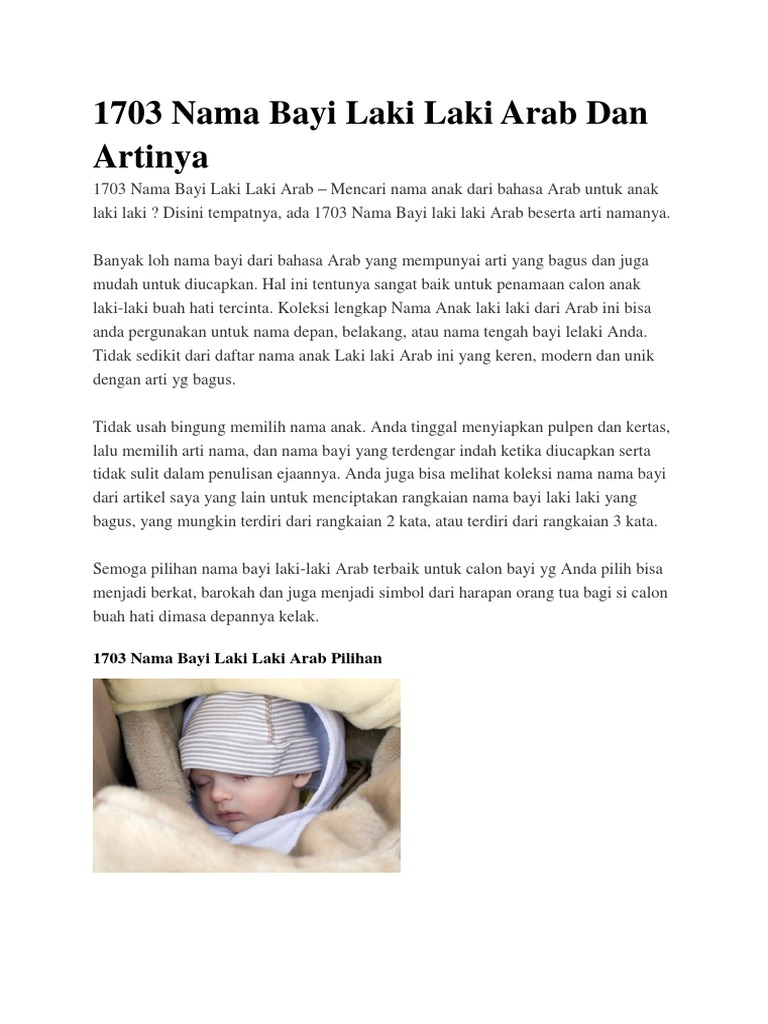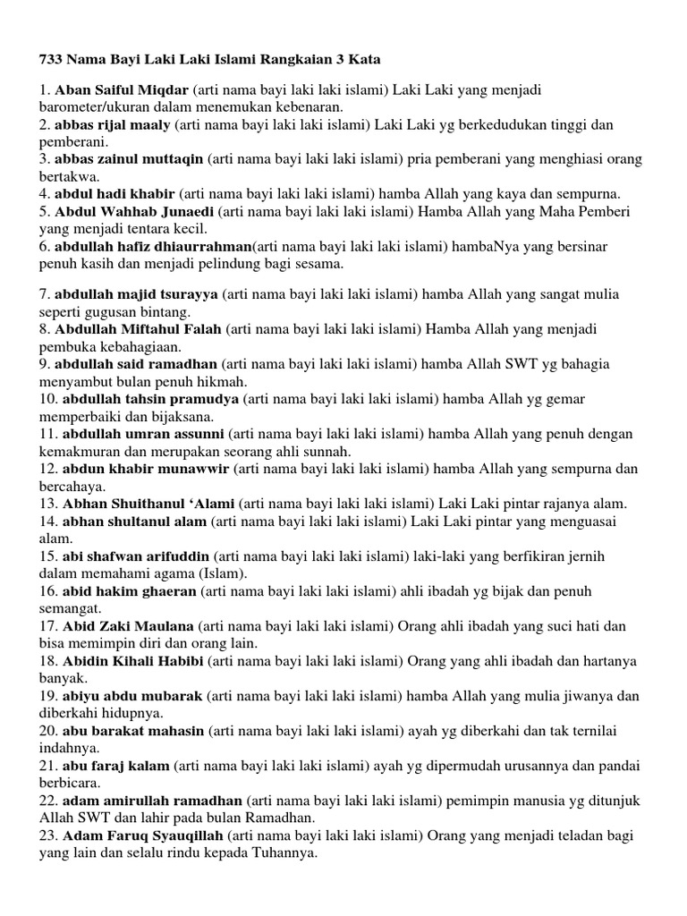 Tujuan penyusunan rangkaian ini sebagai inspirasi dan ide dalam mencari nama anak laki laki modern yang diharapkan mempunyai arti nama yang sesuai dengan apa yang anda bayangkan. 12 rangkaian nama islami anak laki laki 2 suku kata nah jika anda ingin mencari nama untuk anak laki laki dengan nuansa islami tak perlu bingung lagi. Tujuan penyusunan rangkaian ini sebagai inspirasi dan ide dalam mencari nama anak laki laki islam yang diharapkan mempunyai arti yang sesuai dengan apa yang anda bayangkan. Nama bayi laki laki 2 suku kata ini tentunya bisa anda modifikasi sesuai ide nama calon bayi yang anda inginkan.
