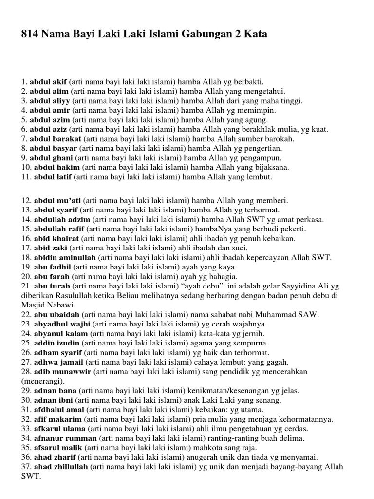 Nama anak laki laki islam 2 kata. List nama bayi yang ada dalam daftar nama anak laki laki islam 2 suku kata pilihan di bawah ini akan selalu di update dan diperbaharui setiap hari sejalan dengan penambahan ide rangkaian nama bayi laki laki 2 kata yg diterbitkan tiap harinya. Sebagian beranggapan dengan menamai namanya dri islam mampu memeberikan dampak positif terhadap kehidupan si bayi. 55 pilihan nama bayi laki laki islami modern 3 kata. 12 rangkaian nama islami anak laki laki 2 suku kata nah jika anda ingin mencari nama untuk anak laki laki dengan nuansa islami tak perlu bingung lagi.