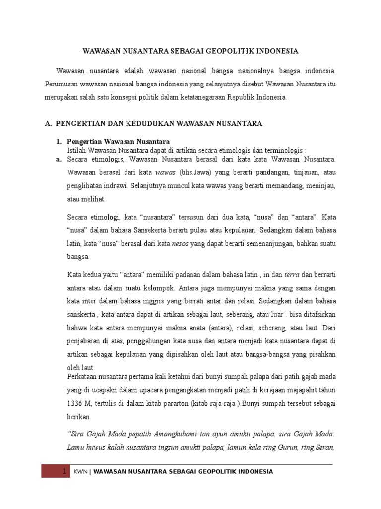 Nusantara adalah istilah yang dipakai untuk menggambarkan wilayah kepulauan yang membentang dari sumatra sampai papua yang sekarang sebagian besar merupakan wilayah negara indonesiakata ini tercatat pertama kali dalam literatur berbahasa jawa pertengahan abad ke 12 hingga ke 16 untuk menggambarkan konsep kenegaraan yang dianut majapahit. Pengertian nusantara konsepsi isi wawasan geopolitik geostrategi hakikat. Habib mustopo mengatakan kata santri berasal dari bahasa sanskerta. Secara etimologis kata wawasan nusantara berasal dari bahasa jawa yaitu wawas nusa dan antara.
