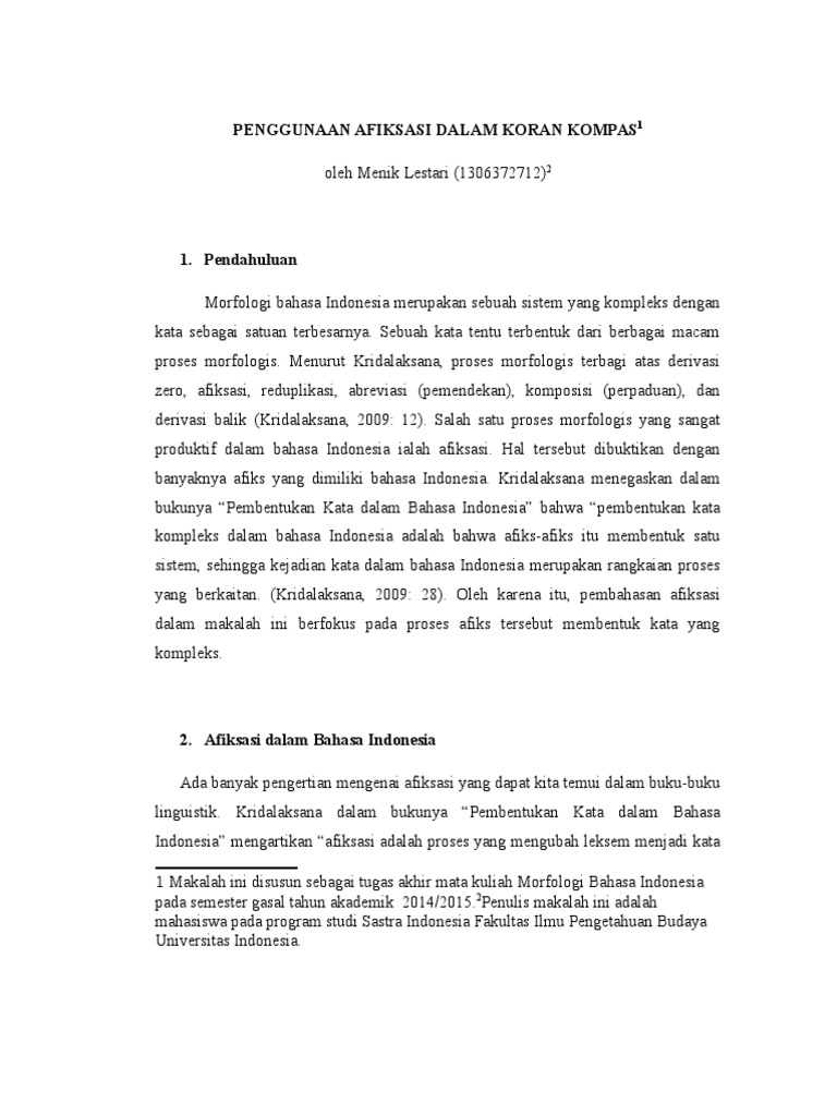 Perhatikanlah misalnya verba yang berawalan meng dapat dibentuk. Ada banyak ragam pembentukan kata dalam bahasa indonesia. Dengan kata lain proses morfologis adalah peristiwa penggabungan morfem yang satu dengan morfem yang lain menjadi kata. Ditulis oleh harimurti kridalaksana guru besar universitas indonesia buku ini membicarakan semua aspek pembentukan kata secara tuntas.