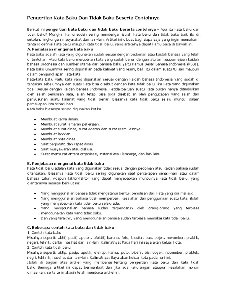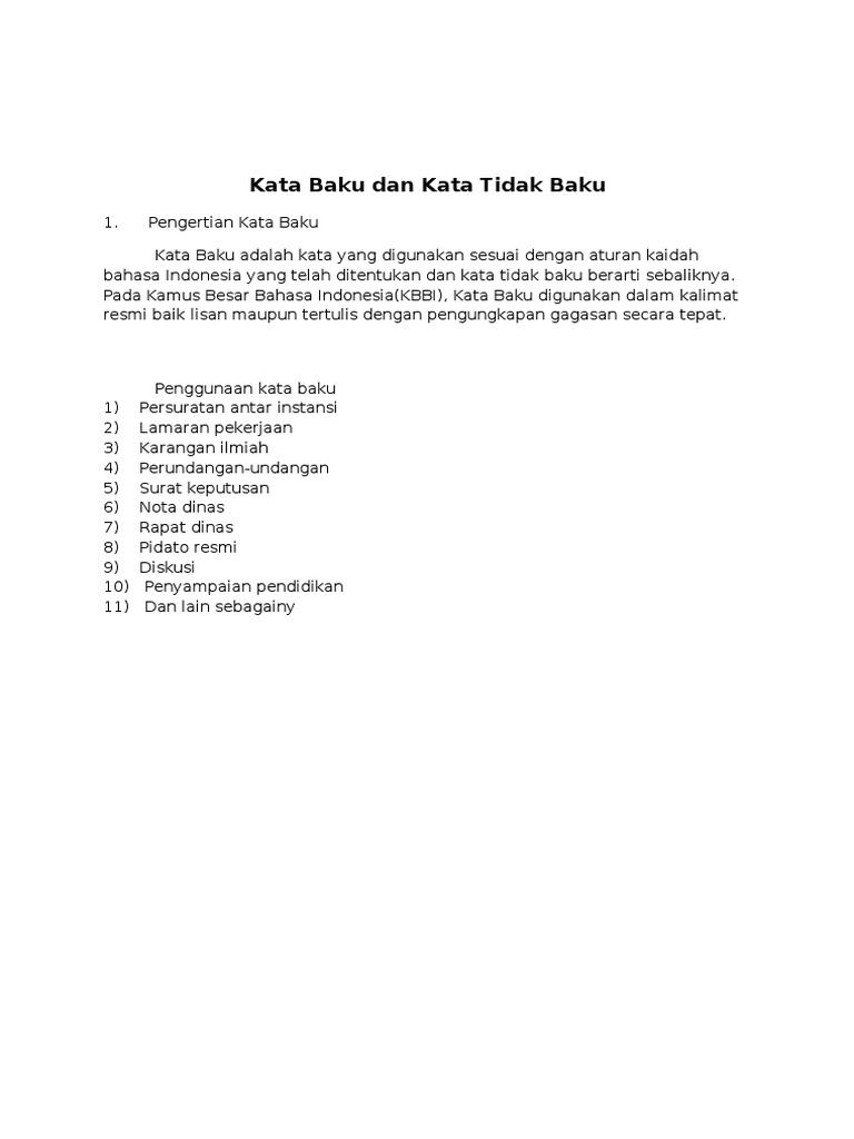 Mungkin kamu sudah sering mendengar istilah kata baku dan tidak baku baik itu di sekolah lingkungan masyarakat dan lain lain. Berikut ini pengertian kata baku dan tidak baku beserta contohnya apa itu kata baku dan tidak baku. Mungkin kita sering mendengar istilah kata baku dan kata tidak baku baik ketika di sekolah lingkungan masyarakat lingkungan kerja dan lain lain. Pengertian kata baku dan tidak baku masih dalam lingkup materi pelajaran bahasa indonesia yang mana pada pembahasan sebelumnya telah kami informasikan terkait dengan pengertian komunikasi verbal dan non verbalkali ini kami akan membahas mengenai pengertian kata baku dan tidak baku.