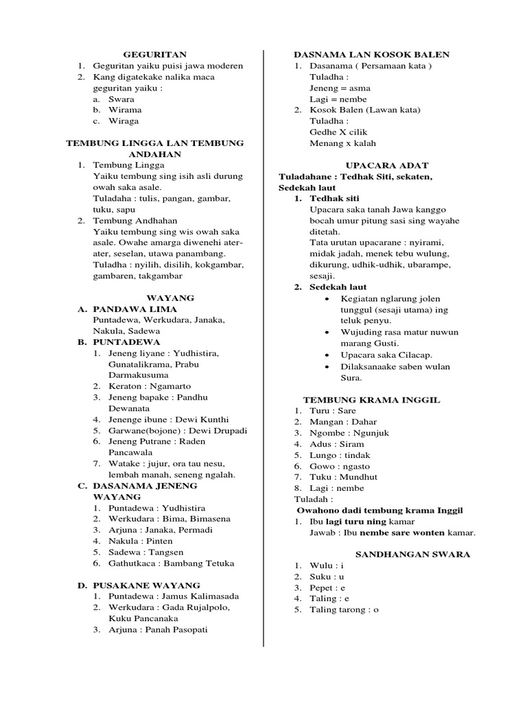 Bagi orang jawa dasanama ini banyak dipakai dalam nama nama tokoh wayang. Agung luhur ajar wuruk ajur remuk alas wanadri di alem diugung ama. Berikut persamaan kata tembung padha tegese yang ada di dalam bahasa jawa. Tembung padha tegese persamaan kata dalam bahasa jawa a j a agung luhur ajar wuruk alas wana.