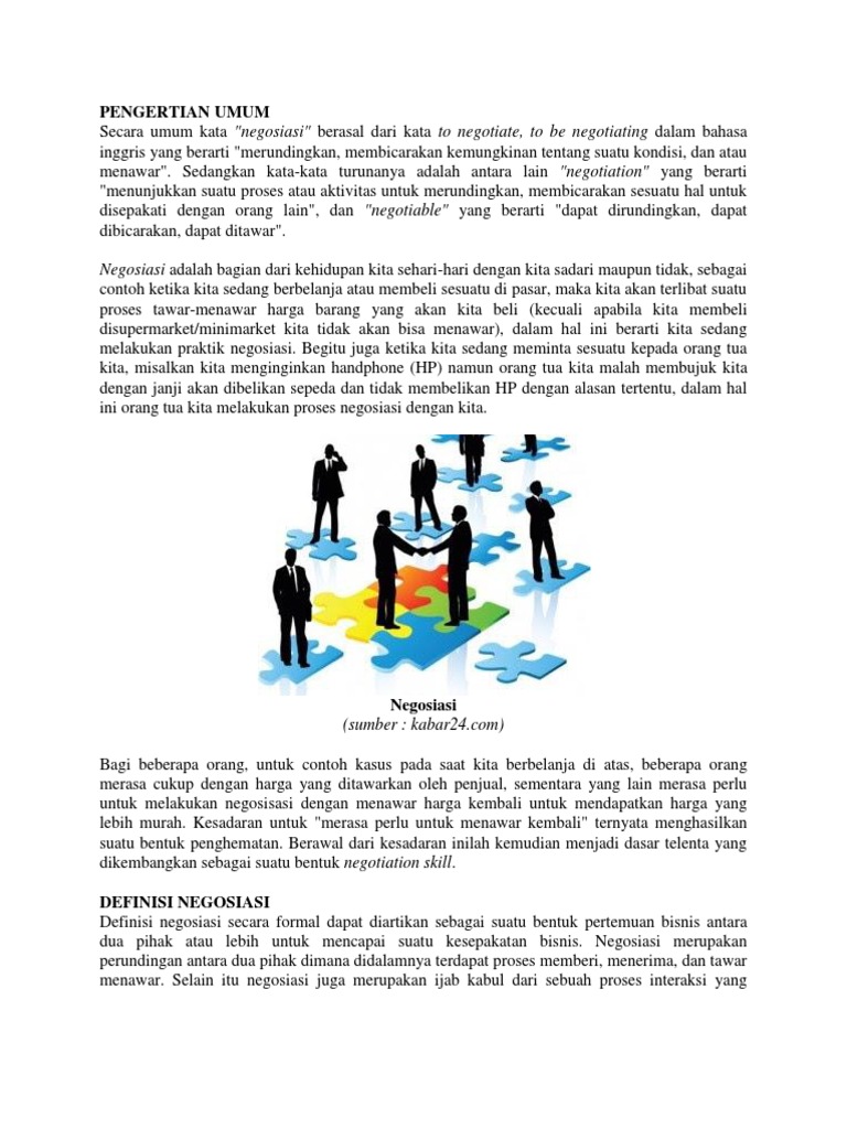 Secara umum kata negosiasi berasal dari kata. Dibawah nanti akan kami urai pengertian teks negosiasi dan struktur nya secara rinci. Apalagi ketika memasuki dunia bisnis contoh negosiasi akan sangat sering ditemukan di sana. Karena secara umum negosiasi berarti pengambilan keputusan oleh dua atau beberapa pihak agar bisa mendapatkan kesepakatan atas jalan keluar terbaik. Secara umumkata negoisasi berasal dari kata.
